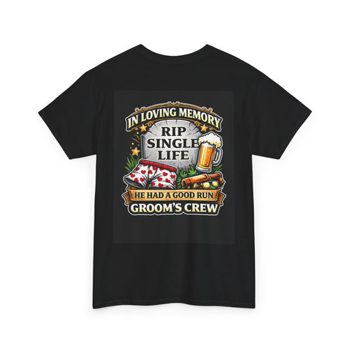 Bachelorette Groom's Crew T-Shirt — "In Loving Memory: RIP Single Life"